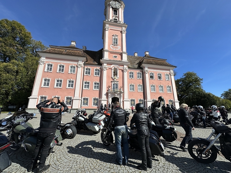 Gemeinsam machten wir dann eine kleine Rundfahrt mit ca. 40-45 Bikes über Kloster Birnau und Meersburg zurück in Ralfs Höhle. Das Wetter war der absolute Burner, am Kloster Birnau konnte man bis zum Sentis schauen und die Gipfel der Alpen sind ja bereist Schneebedeckt.. was für ein Tag.. thanks God... Nach der Rückkehr gab es eine kurze Verabschiedung denn wir mussten ja noch zurück nach Hause.. über die Schwäbische Alb ( wo es dann wieder kalt wurde, die dicken Handschuhe rausgeholt wurden) hin zu unser Endstation ARCHIES dort noch einen fetten Burger verdrückt. Dann Abflug home.. gegen 19:00h waren fast alle zu Hause gesund und Wohl auf. Lieber Leines DANKE für das schöne WE