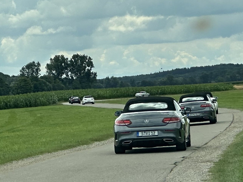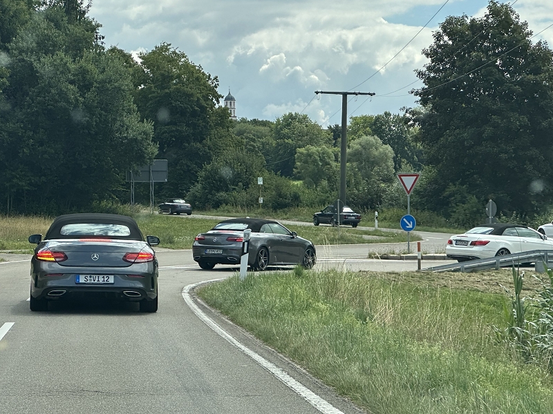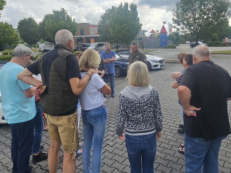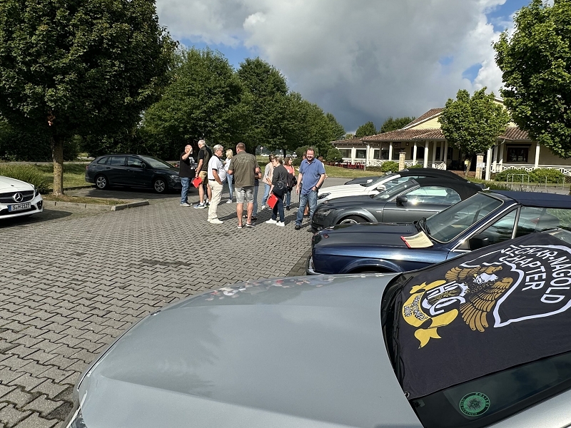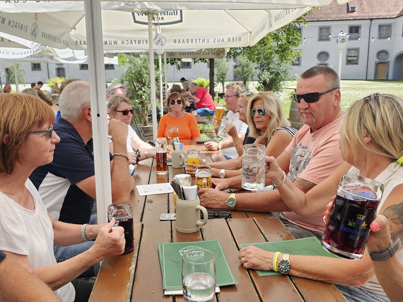 Sonntag 20.07.2025 Nach dem Frühstück traten wir um 10.30 Uhr die Heimreise an. Diesmal umrundeten wir München nördlich, vorbei an Wasserburg und dem Flughafen ging es nach Thierhaupten. Ziel war hier das doch sehr beeindruckende Kloster Thierhaupten. Hier haben wir im Innenhof unser Mittagessen eingenommen und uns dann in gewohnt herzlicher Art voneinander verabschiedet. Hier endete also die offizielle Tour und jeder fuhr auf der für ihn optimalen Route nach Hause. Um 17:00 Uhr hatten dieses dann auch alle heil und ohne Zwischenfälle erreicht. Es war wieder einmal eine gelungene NeNa-Cabrio-Ausfahrt auf „NeNa Standard“. Super Wetter, gutes Hotel, gutes Essen und Trinken und vor allem eine super und sehr gut harmonierende Truppe.