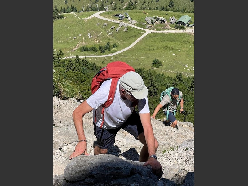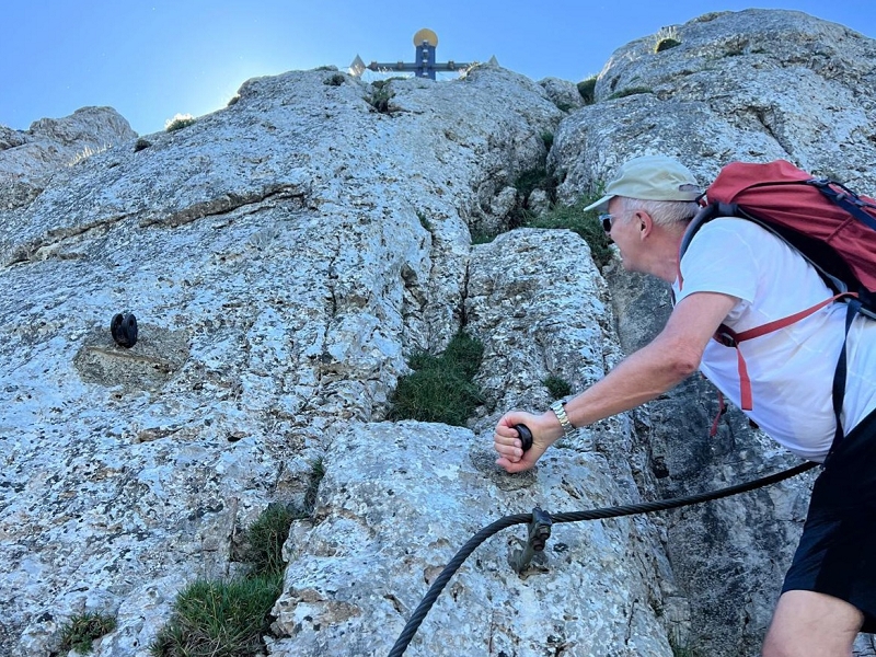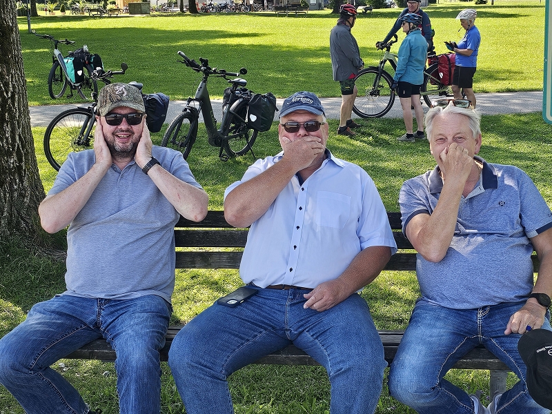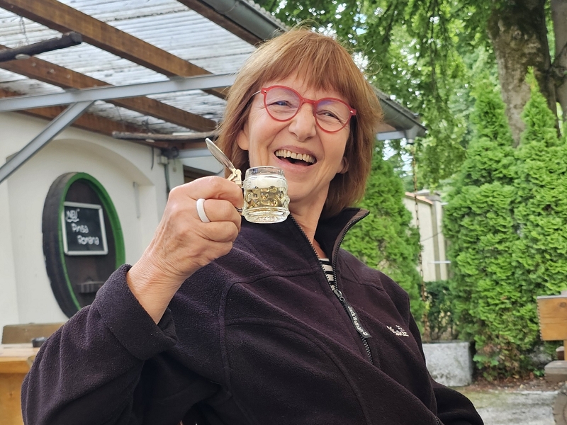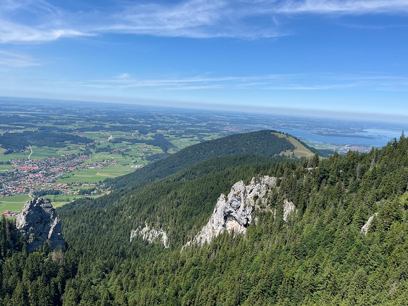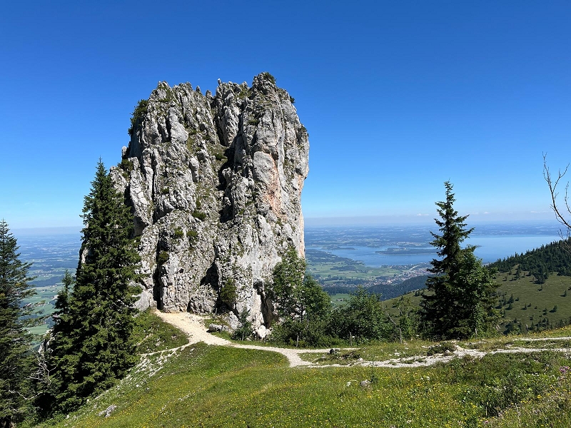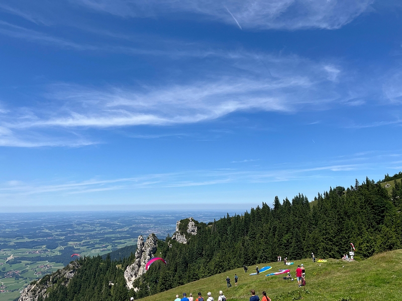 Samstag 19.07.2025 Heute war sportliche Aktivität angesagt. Ein Teil unserer Gruppe machte sich bei doch sehr heißen Temperaturen und stark brennender Sonne auf, um zur Seiseralm (nicht die in den Dolomiten) zu wandern und dort im Biergarten des Seiserhofes bei einem leckeren Bier und gutem Essen den wirklich atemberaubenden Blick auf den Chiemsee zu genießen und danach wieder zurück zu wandern. Die anderen waren noch extremer drauf. Sie fuhren zunächst nach Aschau und dann mit der Bahn hoch hinauf auf die Kampenwand. Aber das war noch nicht genug Abenteuer für sie, nein, sie mussten unbedingt den Gipfel erklimmen und haben sich teils auf allen Vieren den Weg nach oben gebahnt. Nach diesen Abenteuern ging es heute zum Abendessen in den schönen Biergarten des Landgasthofes Messerschmied. Wie am Tag zuvor gingen manche die 2,5 km zu Fuß, die anderen teils erschöpft von den Extremwanderungen des Tages bevorzugten lieber die angebotenen Mitfahrgelegenheiten.