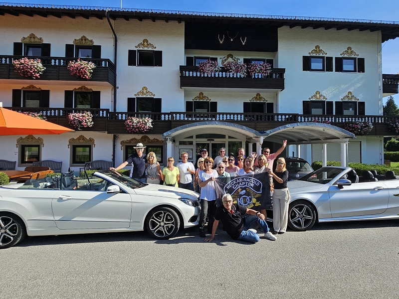 Dieses Jahr hat Axel für uns eine sehr schöne Tour ins Chiemgau geplant und wir konnten mit 18 Teilnehmern und 9 Cabrios von Echterdingen aus in ein schönes verlängertes Wochenende starten .