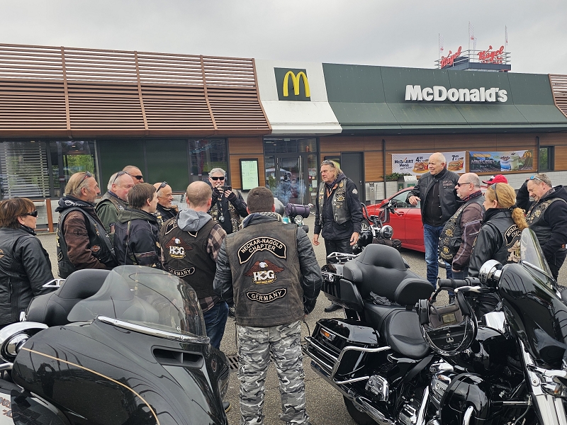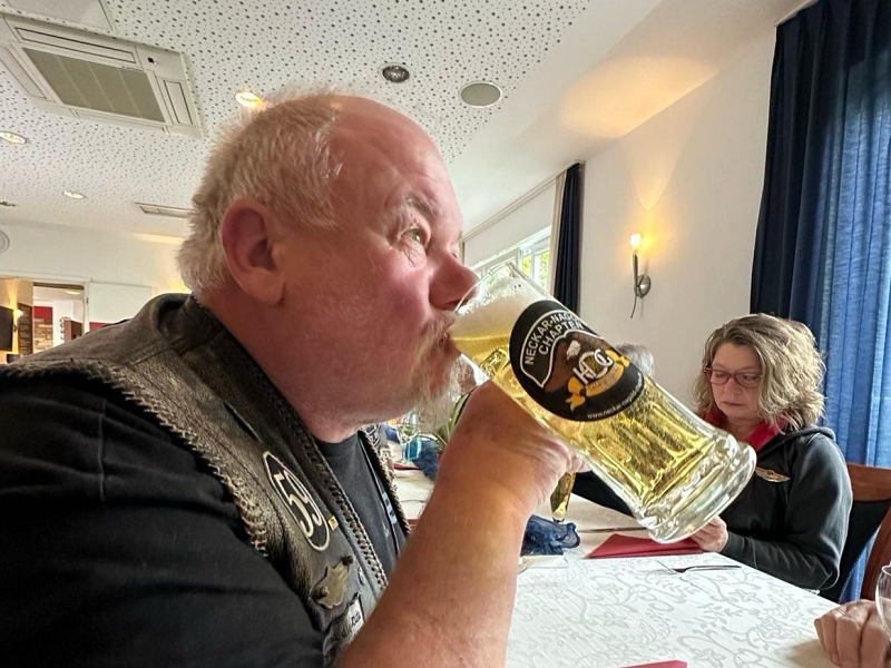 Weiterging es nach Ebersbach zum Matze´s Gedächtnistankstopp bei Lenz. Unterwegs gab es wegen Bauarbeiten eine totale Straßensperrung, was wiederum für Didi und sein Navigationsgerät eine Herausforderung darstellte. Aber auch das wurde gemeistert. Entlang des Neckars ging es wieder Richtung Bad Wimpfen. Kurz davor kleine Kaffeepause bei der Backstube Härdtner in Offenau.