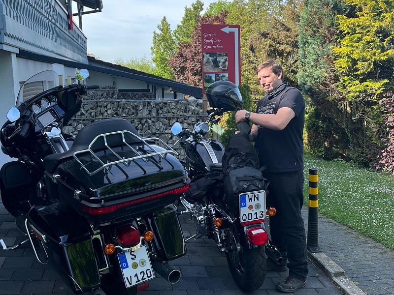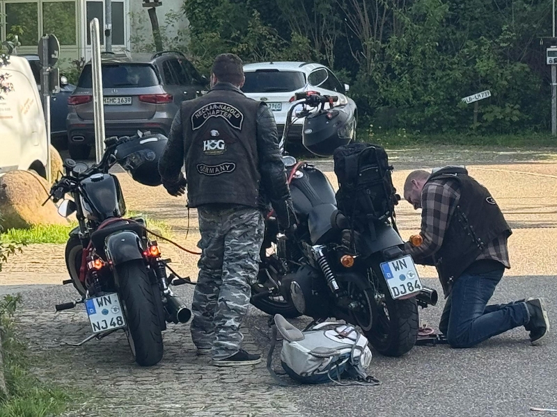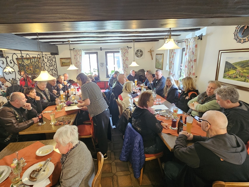 Nach einem leckeren Abschlussessen in der Rommelsmühle ging es in einzelnen Gruppen nach Hause. Dennis musste nochmals am Auspuff nacharbeiten und seinem Baby Starthilfe geben. Gottseidank fiel das Nummernschild, wie bei der SAF 2024, nicht auch noch ab. Wir empfehlen allgemein eine vorbeugende Rundumwartung für eine sorgenfreie restliche Saison.
