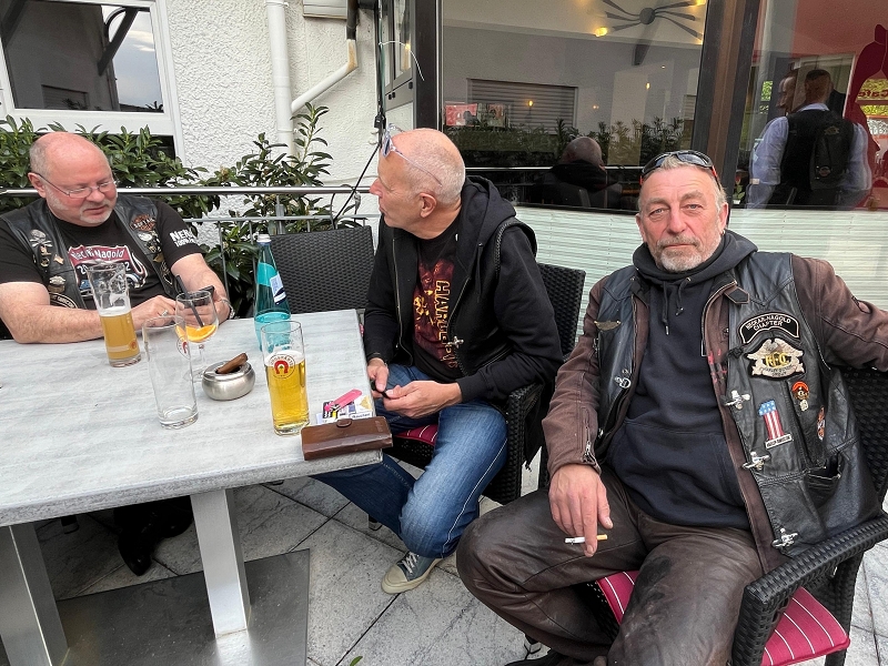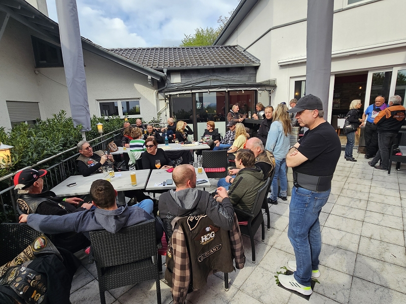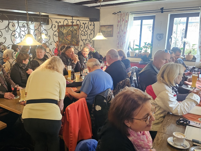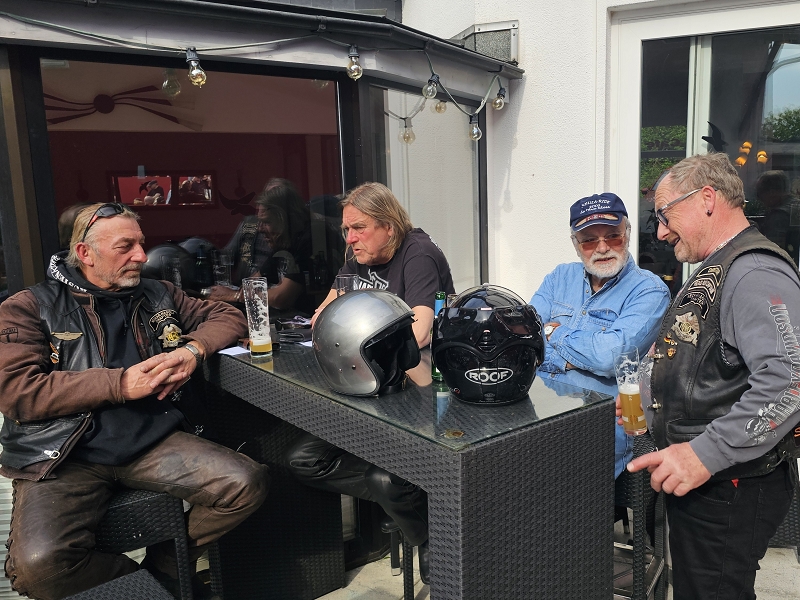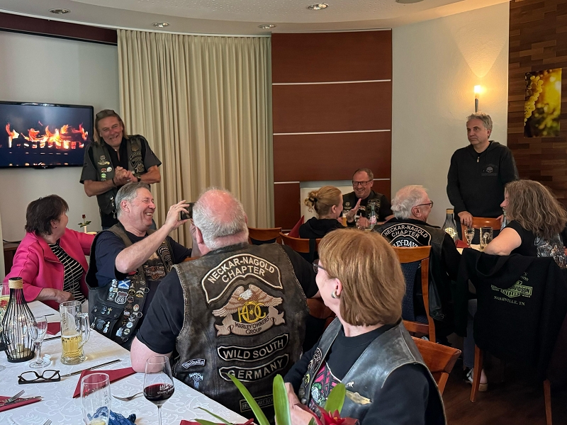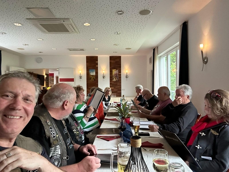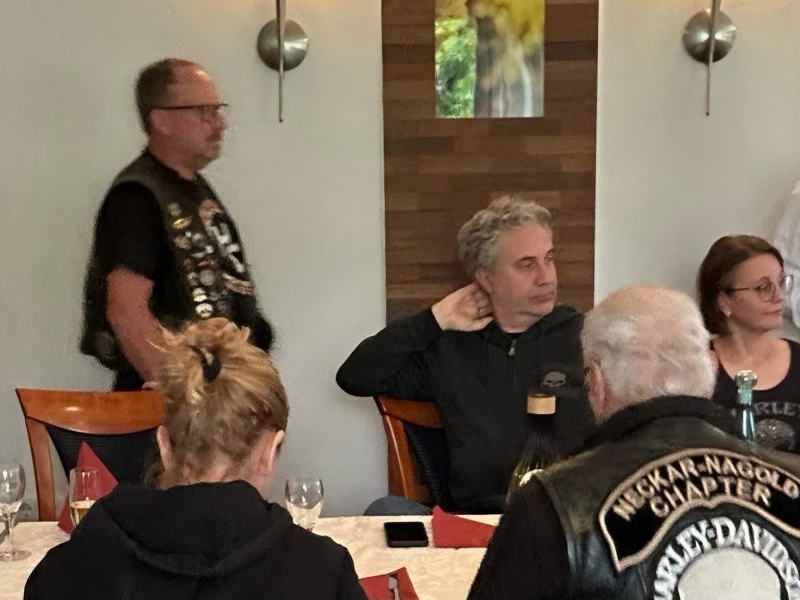 Unser Direktor Mario hielt die obligatorische Ansprache, stimmte uns alle für die kommende Saison ein und bedankte sich beim Organisationsteam Leines, GüBu und Didi. Insbesondere Didi´s gute Leistung, bei seiner Prämiere als Road Captain, hat es ihm angetan. Betont wurde die Vorbildfunktion aller vorangegangenen Road Captains und deren außerordentliche Vorarbeiten auf die Didi quasi uneingeschränkt aufbauen konnte. Des Lobes völlig überrannt und berauscht gab Didi eine Runde für alle aus.