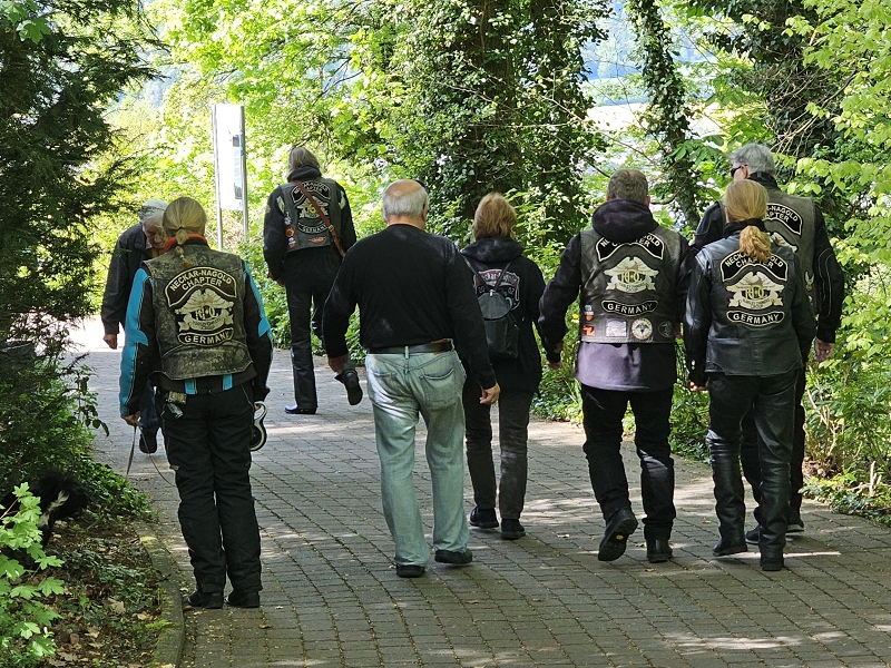 Nach dem obligatorischen Gruppenfoto und Verabschiedung von den Autofahrern ging es bei top Wetter für unsere Motorradgruppe zum ersten Zwischenziel, das Kloster Engelberg in Großheubach. Schön oben auf einem Berg gelegen, verweilten wir dort 1½ Stunden. Einige gingen in sich, bereuten ihre gestrige Maßlosigkeit und taten Buse, andere genossen die Aussicht oder nahmen im Klosterbiergarten ein gehopftes Getränk zu sich.