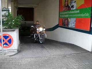Moni hatte noch keine richtige Lust, um in's Hotel zu fahren :-)))... Als Moni kurz vor'm Hotel aus Versehen den falschen Weg fuhr, traute sie ihren Augen nicht, als...nachdem sie kurz umgedreht hatte... Wir waren wie vom Erdboden verschluckt ...Jaaaa...die Einfahrt in die Tiefgarage hat uns sozusagen geschluckt :-)) Moni irrte umher...fuhr nach links und rechts...dann griff sie zum Handy :-) Alle waren schon geduscht... nach kurzer Einweisung, hat dann doch noch alles geklappt :-) |