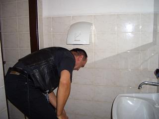 dass er sich seine Haarpracht unter dem Haendetrockner trocknen musste... |