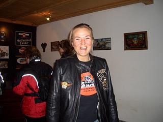 Kathrin vom Rostock Chapter hat beim Dealer auf uns gewartet... wir kamen im vollen Regen in Rostock an. |
