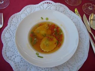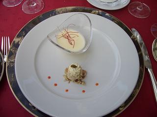irgendwie hatte der Ober mitbekommen, dass Andy Pommes wollte...mit Mayo :-) Wir zogen die weiteren Gänge unseres Menüs vor...Sorry: den Fisch haben wir wieder vergessen, zu knipsen... Schuld war der sprechende Wein :-) Dritter Gang (ohne Bild) "Kross gebratenes Zanderfilet" auf Lauch-Pastasotto |