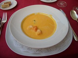 "Geschäumtes Süppchen" von Karotte und Ingwer mit sautiertem Scampo ...ein echter Traum... |