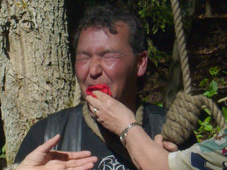 "Pierre" der gnadenlose Schwabe "willenlos" ...mit der Schlinge um den Hals... hätte sich als Mit-Organisator nicht träumen lassen, dass er soo gefoltert wird. |