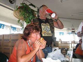 Wiesbaden-Nassau-Chapter, (Rudi...ausgebildeter "Motivationstrainer" und seine Freundin Christine "Mainzer Funkenmariechen") ...die das alles gleich vertilgen... |
