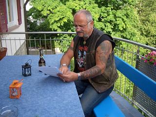 Klaus "Pater" nennt, holte er sofort seine Bibel hervor |