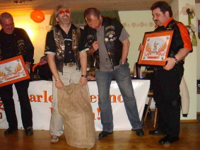 ...nach 20 Schnäpsken fing es langsam an, Spaß zu machen... Roadcaptains waren leider von der Zeremonie ausgenommen... Schade eigentlich :-) |