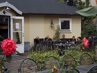 Mittagessen gab es in Kristianopel zwischen einem Rosengarten und