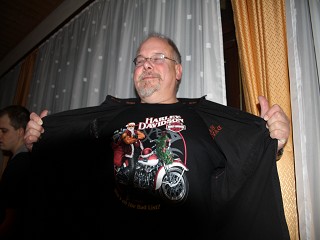 Manne musste nach vorne und der Weihnachtsmann nahm ihm sein Geschenk wieder weg :-) |
