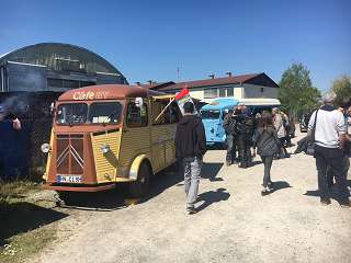 Dazu noch zwei Original Fahrzeuge...in dem einen gab's Cafe und im anderen Crepes...